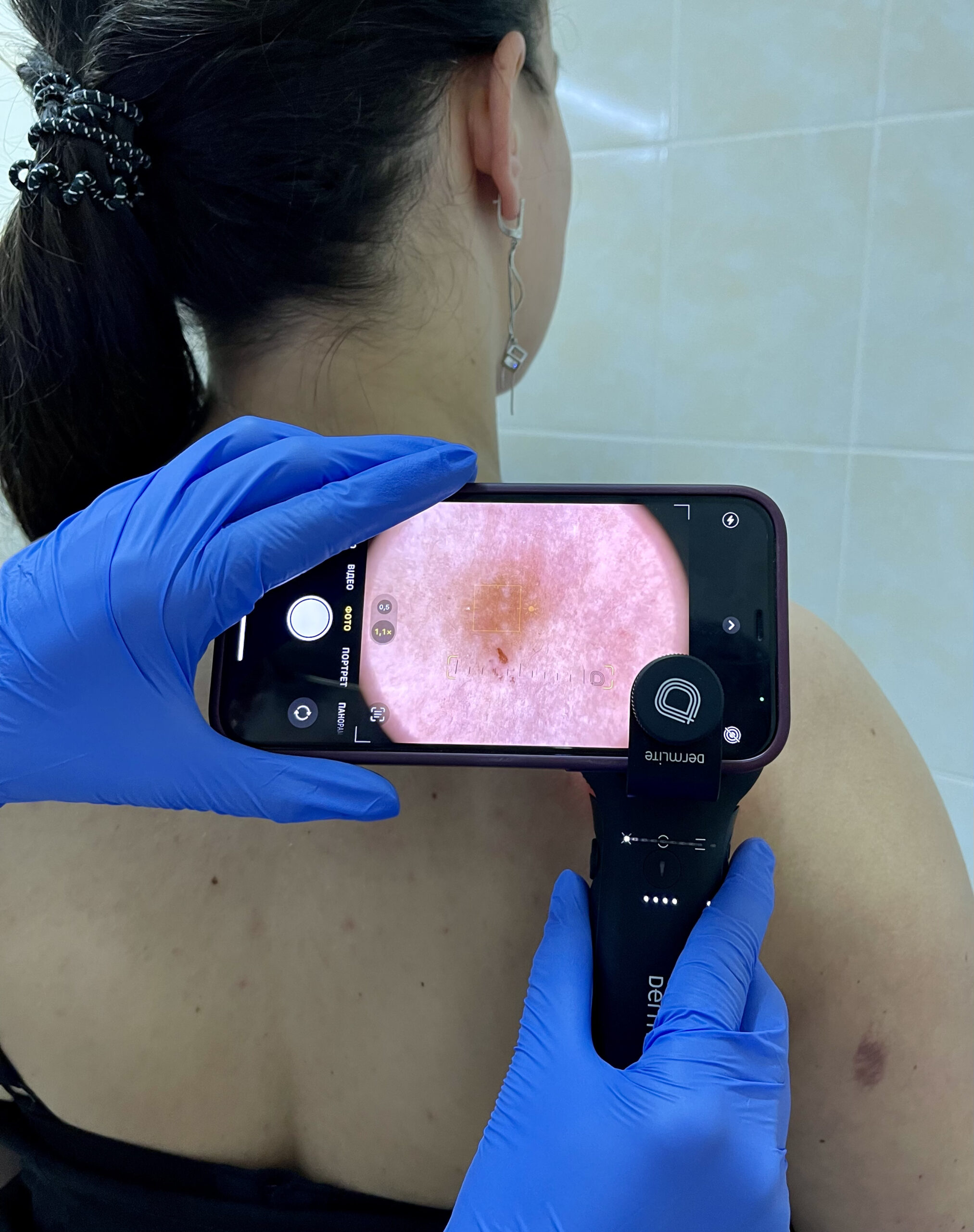 Дерматоскопія – це інструментальне безболісне обстеження патологічного новоутворення шкіри. Ця методика діагностики прийнята на міжнародному рівні і входить в більшість протоколів обстежень. Полягає у огляді змінених ділянок за допомогою оптичного пристрою – дерматоскопа. Процедура не вимагає спеціальної підготовки і не завдає дискомфорту пацієнту. Метод дозволяє оцінити морфологічні структури шкіри з багатократним збільшенням, які не можливо візуалізувати неозброєним оком при звичайному клінічному огляді.